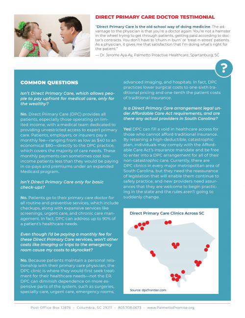 Palmetto Promise Institute is an advocate for Direct Primary Care (DPC) in South Carolina. Learn more about DPC in our latest Fast Facts report! You can download the the full report here.