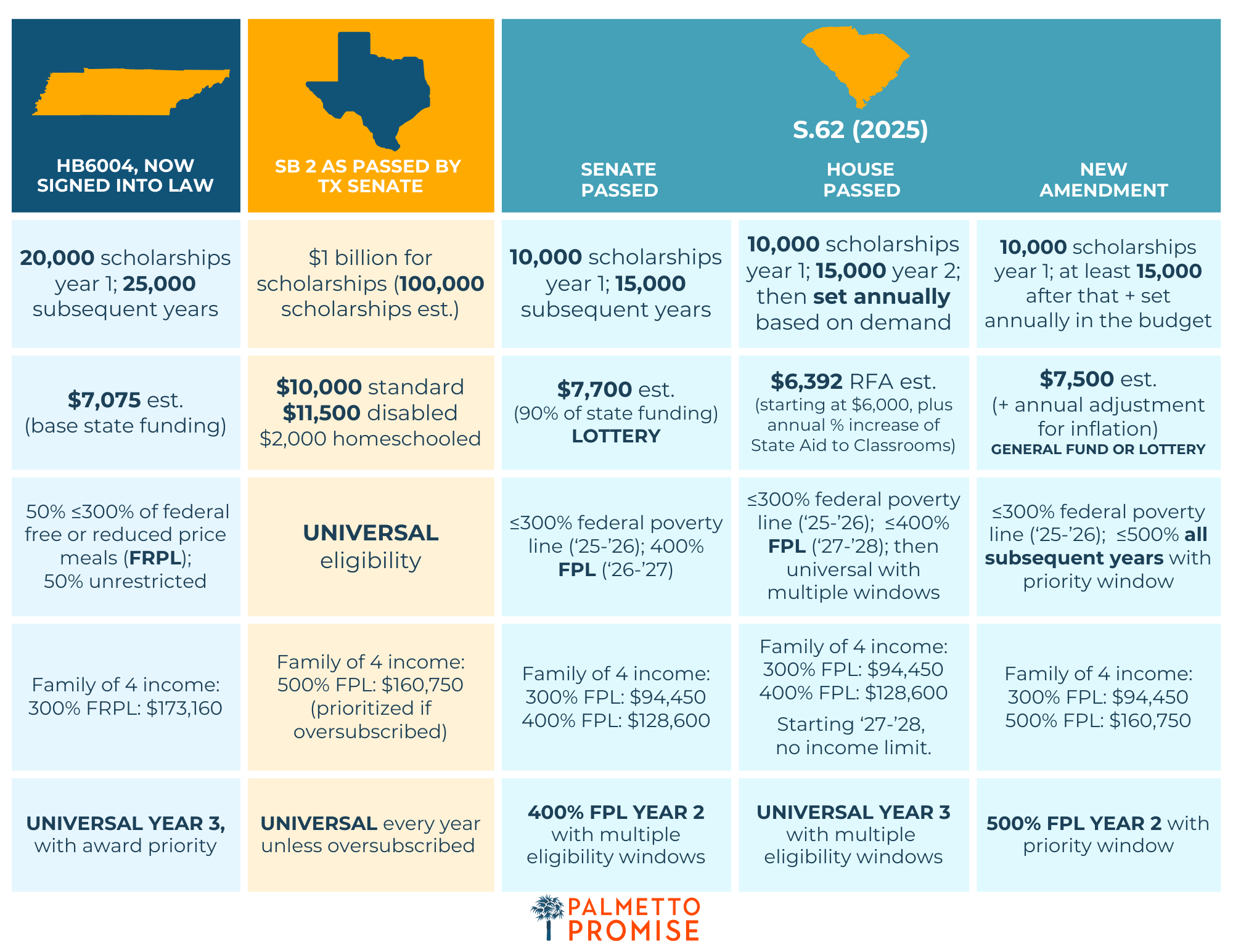 Palmetto Promise is hopeful that the Senate will quickly approve S.62 as amended and send it back to the House for concurrence, so the bill can be signed into law by Governor McMaster in the coming weeks. All the hard work and prayers since the Eidson decision that left ESTF students with cancelled scholarships in the middle of the school year have paid off. The result is a robust, near-universal ESA program with room to grow as interest in the program increases.