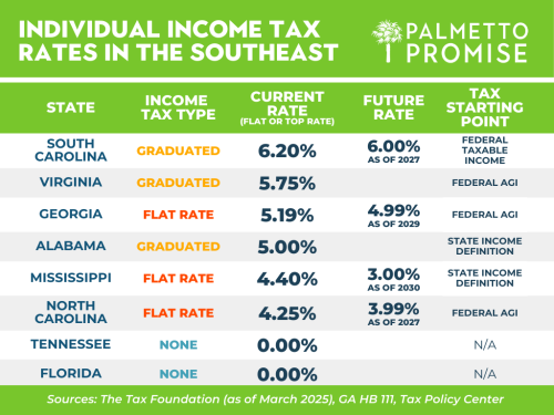 H.4216 is a conservative-sponsored plan to cut the top current South Carolina individual income tax rate from 6.2% to 5.39%, then on down to 1.99% if the economy stays healthy.