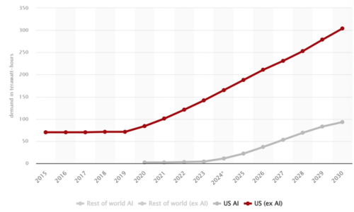 US Data Center Power Demand (2015 to 2023, with a forecast to 2030)